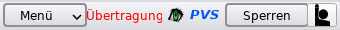 | Der Statusbereich des PVS-Clienten erscheint beim Anstossen der Maus an den mittleren Bereich des oberen Bildschirmrandes. Das Ausklappmenu kann durch Antippen des Menu-Knopfes erreicht werden. | |