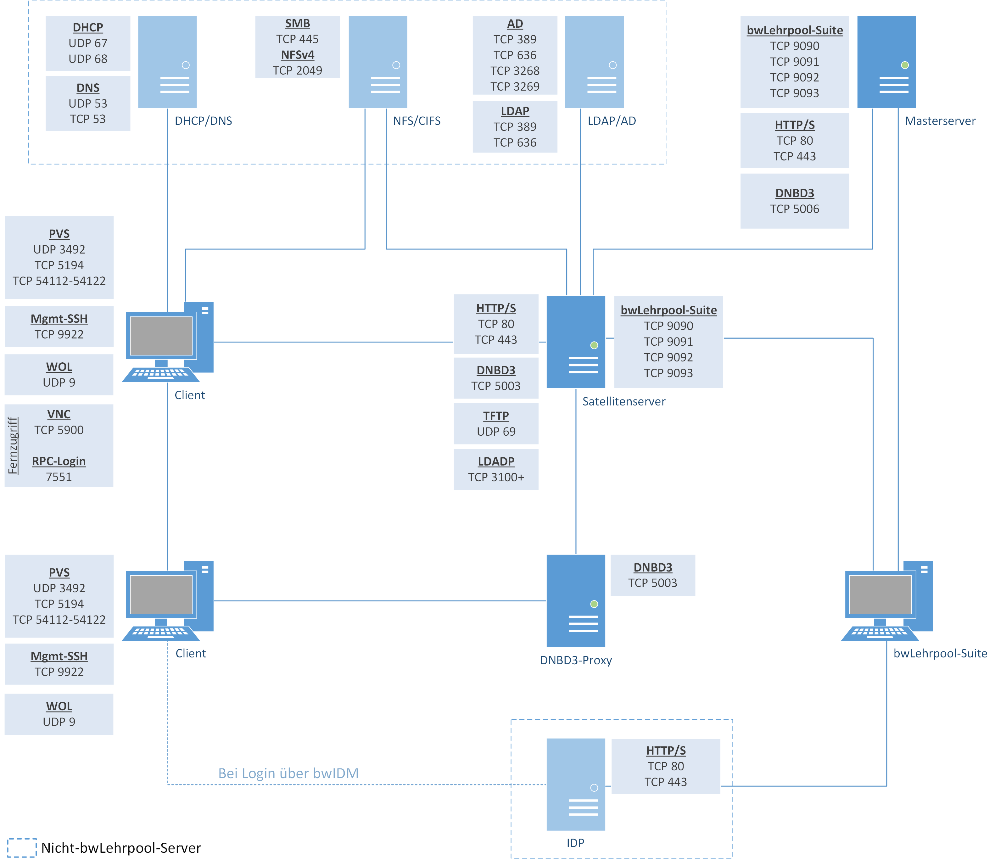 Diese Unterseite fasst die im bwLehrpool-System verwendeten Ports zusammen.